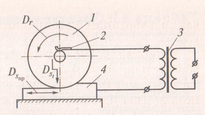 Наиболее характерная схема электроконтактного метода обработки представлена на рис. 4.1. К электроду-инструменту, вращающемуся металлическому диску 1 через токосъемник 2 от понижающего трансформатора 3 подводится переменный ток промышленной частоты напряжением от 6 до 40 В. Другой электрод — это обрабатываемая заготовка 4, перемещающаяся в процессе обработки в требуемом направлении. Сила тока может достигать 5 000... 8 000 А.