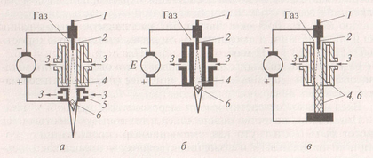 Рис. 4.17. Схемы дуговых плазменных головок: