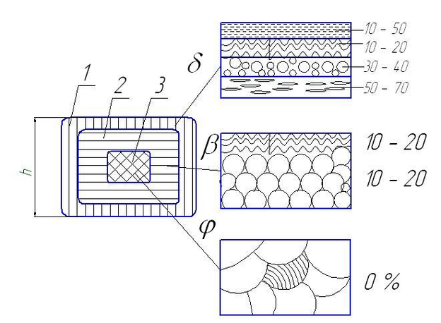 Рис.7. Структурные слои в поперечном сечении литейных изделий