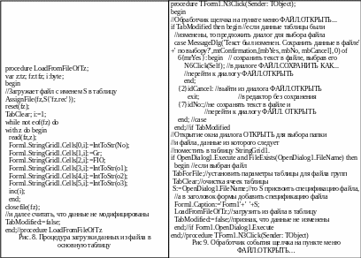 Создайте в начале раздела реализации процедуру LoadFromFileOfTz, загружающую в основную таблицу данные из файла со спецификацией S и устанавливающую признак, что данные в таблице после загрузки ещё не изменены (см. рис. 8). -