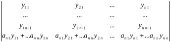 (расписывая в сумму определителей, учитывая равенство нулю определителей с одинаковыми строками)