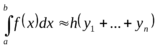 . Заменим интеграл интегральной суммой, вычисляя площадь под графиком функции как сумму площадей прямоугольников с основанием h, высотами