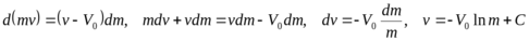 ракета неподвижна и имеет вместе с топливом массу M. Вывести формулы для скорости ракеты