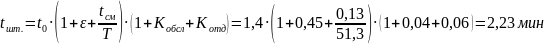 Для определения штучного времени tшт, мин, необходимо знать сумму всех непроизводительных затрат времени, приходящихся на одну операцию сверления: