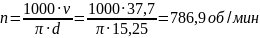 Частоту вращения шпинделя n, об/мин, определяют по формуле: