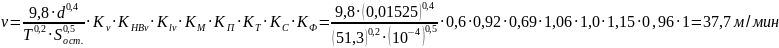 Скорость резания v,м/мин, присверлении может быть рассчитана по формуле (при сверлении стали):