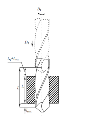 (lвр — величина врезания сверла, для сверл с двойной заточкой lвр +lпод = 0,5∙d;