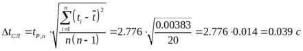 3. Результирующая погрешность измерения времени колебаний маятника: