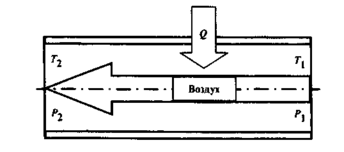 Метод протока заключается в том, что воздух непрерывно прокачивается через трубку и при этом к нему подводится некоторое количество теплоты Q. Воздух, проходя по трубке, нагревается от температуры