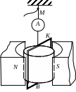 Заряд конденсатора измеряют с помощью баллистического гальванометра. Баллистический метод является одним из приемов не только электрических, но и магнитных измерений. Баллистический гальванометр относится к приборам магнито-электрической системы, схематичное устройство которых показано на рис. 1. Между полюсами постоянного магнита NS для создания -радиального магнитного поля помещен стальной цилиндр В. Цилиндр закреплен неподвижно. В зазоре между полюсами магнита и цилиндром может свободно вращаться рамка К с обмоткой из тонкой проволоки, подвешенная на металлической или кварцевой нити М. Для отсчета углов поворота рамки служит зеркальце А, на которое падает световой луч от осветительного устройства. Баллистический гальванометр служит для измерения заряда, длительность протекания которого по цепи мала по сравнению с периодом Т собственных колебаний рамки. Баллистический гальванометр отличается от обычных зеркальных гальванометров увеличенным значением момента инерции I его подвижной системы. Если через гальванометр пропустить кратковременный импульс тока (<<T), то на рамку в каждый момент времени действует вращающий момент, обусловленный взаимодействием тока i с магнитным полем: