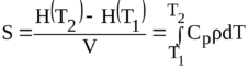 где V(м3) – объем, Ср = Ср(Т) – теплоемкость (Дж/кг К), - плотность (кг/м3), Т1 и Т2 – нижний и верхний пределы температуры (К), между которыми функционирует система.