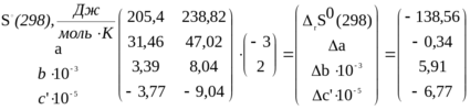 Необходимые для расчета данные [1] оформим в виде матрицы термодинамических характеристик и вектора – столбца стехиометрических коэффициентов.