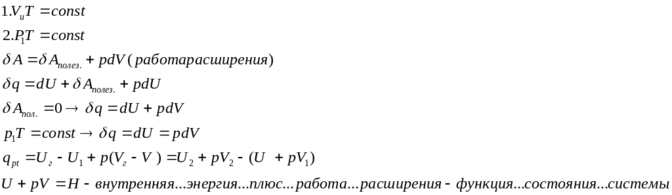 равновесный (обратимый) – проходит через непрерывную последовательность равновесных состояний (или когда при изменении в окружающей среде процесс меняется).