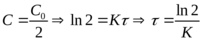 при котором концентрация веществ уменьшается в 2 раза.