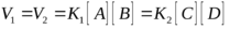 V1 – скорость прямой реакции V2 – обратной