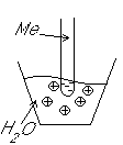 Любой металл погруженный в воду имеет в себе отрицательный заряд, величина этого заряда определяется свойствами металла.