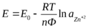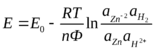 - уравнение Нериста для гальванического элемента. Ф = 96500