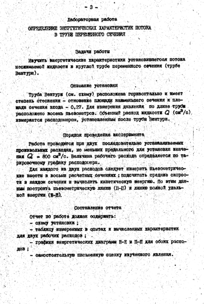 ПОСТРОЕНИЕ ДИАГРАММЫ УРАВНЕНИЯ БЕРНУЛЛИ