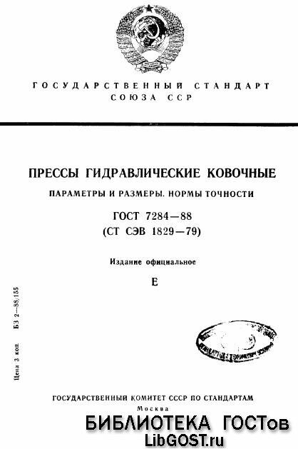 ГОСТ 7284.88 Прессы гидравлические ковочные. Параметры и размеры. Нормы точности (975320)
