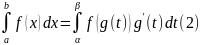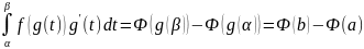 => Ф(g(t)), определенная и непрерывная на [α, β], является на [α, β] первообразной для f (g(t))g'(t) => из (1) и g(α)=a, g(β) = b