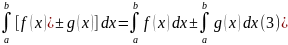 | 7. Основные свойства определенного интеграла. Оценки интегралов. Формулы среднего значения. 1°. 3°. Пусть f (х) и g(х) интегрируемы на [а, b]. Тогда f (х) + g (х), f (х) ‒ g (х) и f (х) g (х) также интегрируемы на [а, b], причем