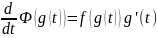 причем Ф' вычисляется по аргументу х: Ф'(g(t)) = Ф'(х), где х = g(t). Т.к. Ф'(х) = f (х) => Ф'(g(t)) = f (g(t)) =>