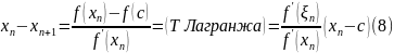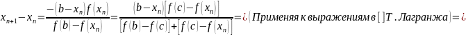 и нулевое приближение точка х0 = b (при этом {хп} ‒ невозрастающая). З2. Оценка отклонения n‒го приближения хn от точного значения корня с. Т. Лагранжа к f (хп) = f (хп) ‒ f (с) => f (хп) = (хп ‒ с) f ' (ξn) =>