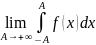 Пусть ε > 0. Так как g (х) → 0 при х→ ∞, то по данному ε можно выбрать В так, что при А1 ≥ B выполняется неравенство g(А1)<ε/(2K) => из неравенства (5) => для О4. Пусть f (х) определена на прямой ‒∞ < х<+∞ и интегрируема на каждом сегменте, принадлежащем этой прямой. Функция f (х) интегрируема по Коши, если Ǝ