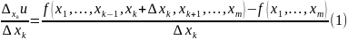 является ф-цией от Δxk, определенной для всех, ≠ 0, значений Δxk, для которых М (x1, …, xk‒1, xk + Δxk, xk+1… , xm) О. Если Ǝ предел отношения (1) частного приращения Δxk u функции в М (х1, ..., хт) к соответствующему приращению Δxk аргумента xk при Δxk → 0, то этот предел называется частной производной функции и = f (х1, ..., хт) точке М по аргументу хk :