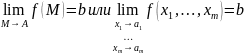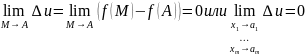 Если каждой точке М из {М} точек Ет ставится в соответствие по известному закону некоторое число и, то говорят, что на мн‒ве {М} задана функция и = и (М) или и = f (М). {М} ‒ область задания функции и = f (М). Число и, соответствующее данной М из {М} ‒ частное значение функции в М. Совокупность {и} всех частных значений и = f (М) ‒ множество значений этой функции. О1. Число b называется предельным значением функции и = f (М) в точке А ( пределом функции при М → A), если для О2. Число b называется предельным значением функции и = f (М) в точке А, если для