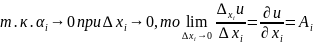 где А1, ..., Ат ‒ некоторые не зависящие от Δx1, … , Δxm числа, а α1, ..., αт ‒ бесконечно малые при Δx1 →0, … , Δxm →0 функции, равные 0 при Δx1 = … = Δxm =0. (2) ‒ условие дифференцируемости ф‒и в М. Другая форма: