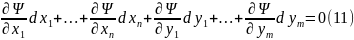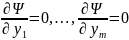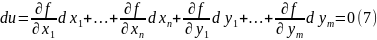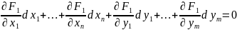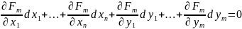 (все частные производные берутся в М0.) В (7) dy1, ...., dут ‒ это дифференциалы функций (4) => (7) не является тождеством отн‒но dy1, ...., dут . Если в уравнения связи (2) подставить (4), являющиеся решением системы (2) => уравнения (2) обратятся в тождества, дифференцируя их:
