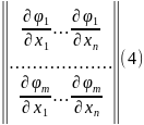 => если их взять (3) для каждого l = 1, 2, ..., т в М0 , то k‒я строка якобиана (2) является линейной комбинацией остальных строк с коэффициентами Функциональные матрицы. Пусть функции (1) определены и дифф‒мы в некоторой окрестности М0 (х1°, ..., хп°) и все их частные производные 1‒го порядка непрерывны в самой М0. Функциональная матрица из т строк и п столбцов: