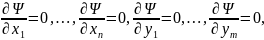 что и в случае, когда все х1, ..., хп , y1, ..., yт независимы. Надо в (17) подставить вместо dy1, ..., dyт их значения из системы (8). Потом изучить знакоопределенность d 2 Ψ в данной М0. |