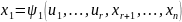 Равенства (7) и 1‒ые r равенств (1) полностью эквивалентны в окрест‒ности N0 : если подставить x1, ..., xr из (7) в 1‒ые r равенств (1), то они обратятся в тождества относительно xr+1, ..., хп, и1 ..., иr . Дифференцируя (7) по xl (l = r + 1, ..., п) и замечая, что и1 ..., иr не зависят от xr+1, ..., хп :
