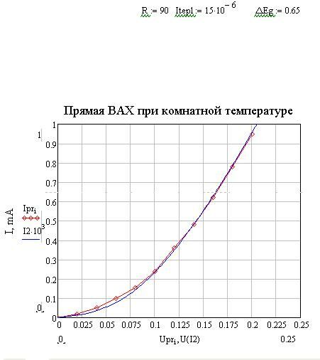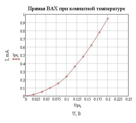 Прямая ветвь ВАХ p-n перехода при комнатной температуре