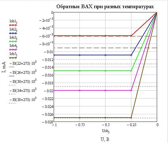 Снять обратные ветви вольт-амперных характеристик p-n перехода при пяти значениях температуры в пределах от комнатной до 45-55°С,
