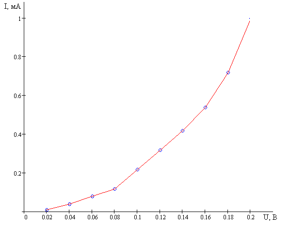 Указание: прямой ток не должен превышать 1 мА; прямое напряжение следует изменять с интервалом не более 0,04 В.