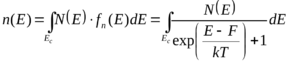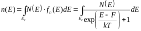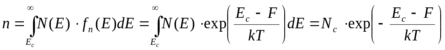 Для того чтобы рассчитать концентрацию всех свободных электронов, т.е. концентрацию электронов в зоне проводимости, необходимо проинтегрировать по всей зоне проводимости, согласно (3.9). Поскольку функция Больцмана – очень быстро спадающая экспонента, при интегрировании по зоне в качестве верхнего предела использована ∞.
