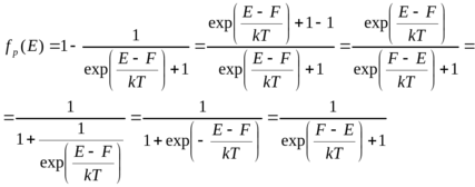 ; сумма вероятностей обоих событий «занят», «не занят» равна единице. Но вероятность того, что энергетический уровень в валентной зоне не занят электроном, есть вероятность нахождения на этом уровне дырки