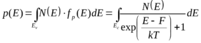 Число электронов в зоне проводимости и дырок в валентной зоне обычно значительно меньше числа энергетических состояний, содержащихся в этих зонах. Поэтому средняя плотность заполнения энергетических состояний электронами и дырками f соответствует неравенству f<<1. Вероятность выражается в долях единицы или в процентах.