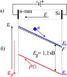 При воздействии электрического поля Ē на полупроводник средняя скорость движения носителей заряда становится не равной нулю (