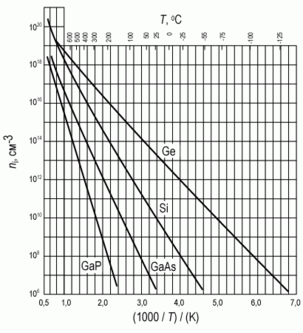 В области температур между Ti и Ts (при температурах, близких к комнатной) можно легко рассчитать концентрацию неосновных носителей заряда. Исходя из равенства ni=np,