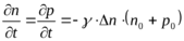 При квадратичной рекомбинации концентрация уменьшается по гиперболическому закону. Аналогичные соотношения можно написать для дырок.