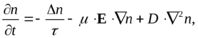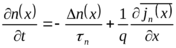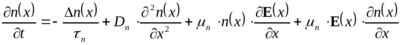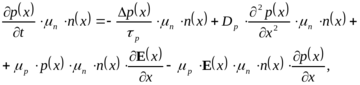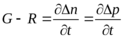 В общем случае, для полупроводника, в объеме которого происходит генерация (G) и рекомбинация, изменение концентрации носителей во времени заряда может быть определено в результате решения уравнения непрерывности:
