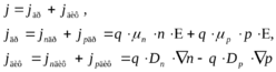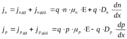 Полный ток каждого вида носителей складывается из диффузионного и дрейфового токов: