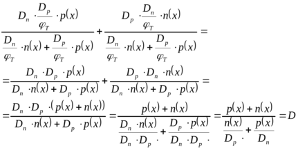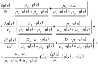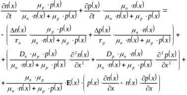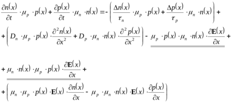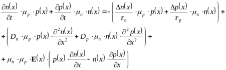Другими словами, при высоком уровне инжекции биполярное уравнение непрерывности совпадает с любым из уравнений непрерывности для электронов и дырок.