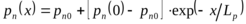 Диффузионные длины для электронов Ln и для дырок Lp характеризуют то расстояние, на которое в результате диффузии и рекомбинации концентрации избыточных носителей уменьшится в е раз (е
