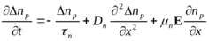 Эти уравнения будут применяться для анализа квазинейтральных областей полупроводниковых приборов, где избыточные концентрации электронов и дырок
