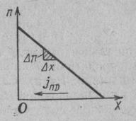 Следует обратить внимание на то, что если градиенты концентрации и диффузионные потоки электронов и дырок направлены в одну сторону, то образуемые ими диффузионные токи будут протекать в противоположных направлениях, компенсируя друг друга.